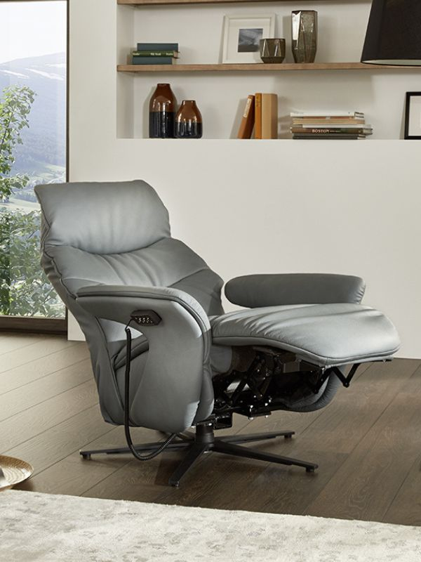 Uw stoffen of leren fauteuil is stevig gebouwd op een frame met een draaiplateau of een vijfarmige draaivoet. In totaal heeft u keuze uit zes varianten. Dankzij de verstelbare hoofd- en voetensteun kunt u de stoel geheel naar eigen wens instellen. Vind moeiteloos uw ideale zit- of ligpositie dankzij de traploze verstelling. Ook de hoofdsteun kan op verzoek elektrisch worden versteld. De accu voor de TV-fauteuil is beschikbaar in zilver of antraciet en zit aan de buitenkant van de stoel. Hij is eenvoudig te bedienen en heeft een modern ontwerp.