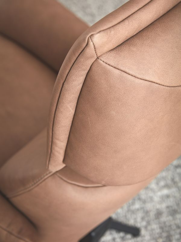 Ook de uitstraling van de fauteuil kiest u zelf. De bekleding is verkrijgbaar in leer of een onderhoudsvriendelijke stof, met een ruime keuze aan moderne en tijdloze kleuren. Het frame is gemaakt van stevig metaal voor stabiliteit en veiligheid. Het onderstel is beschikbaar in een stervorm (in edelstaal-look, antraciet of brons) of als draaiplateau in drie verschillende stijlen.